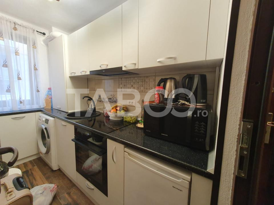 Apartamentul se inchiriaza mobilat si utilat cu: plita electrica, cuptor, hota, masina de spalat rufe, uscator rufe, frigider cu congelator, cuptor cu microunde si TV.