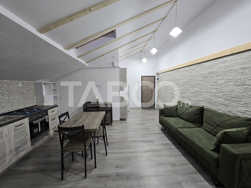 TABOO Imobiliare propune un apartament de inchiriat cu 2 camere, decomandat, situat in localitatea Sibiu, zona Calea Cisnadiei - Arhitectilor, aflat la mansarda intr -un imobil tip bloc cu regim de inaltime pe Parter + 1 Etaje + Mansarsa; anul constructiei 2021, structura caramida. Suprafata utila de 42 mp.
