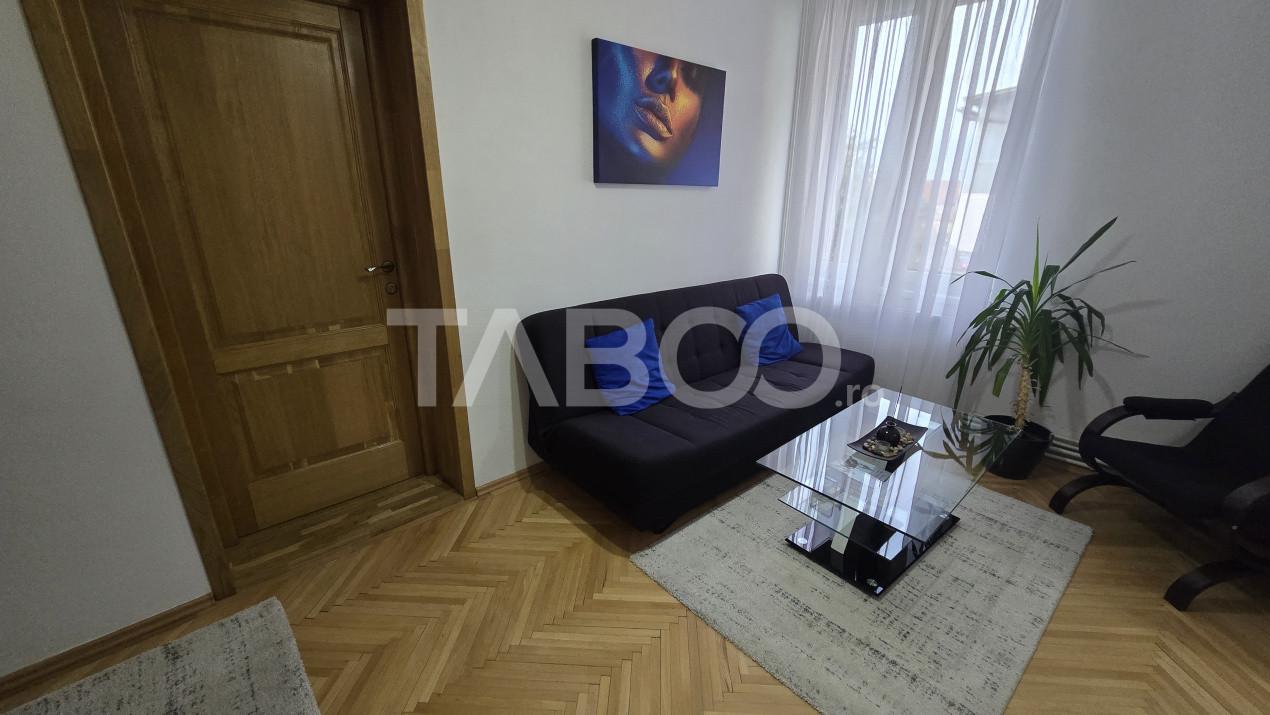 TABOO Imobiliare propune un apartament de inchiriat cu 3 camere, decomandat, situat in localitatea Sibiu, zona Calea Poplacii, aflat la etajul 1 intr -un imobil tip casa/vila cu regim de inaltime pe Parter + 1 Etaje; anul constructiei 1970, structura caramida. Suprafata utila de 125 mp + balcon de 3 mp, terasa de 5 mp si gradina de 100 mp