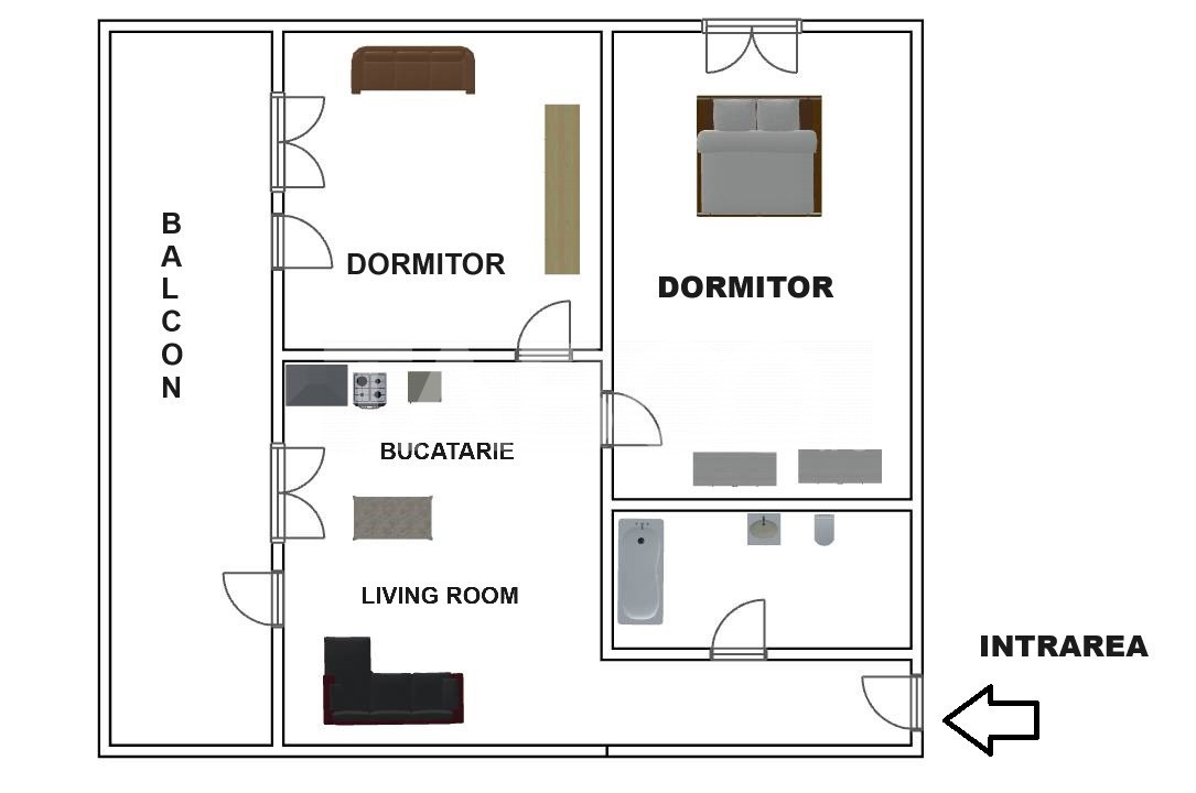 - un dormitor cu acces pe balcon;