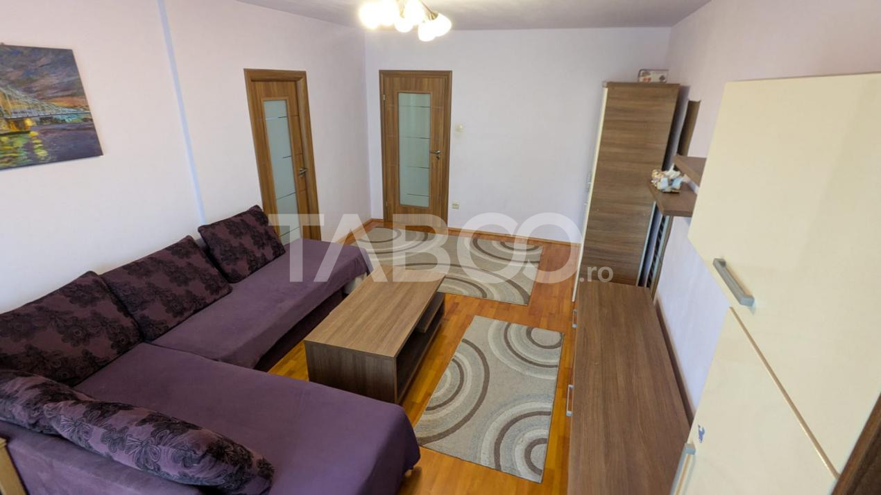 TABOO Imobiliare propune un apartament de inchiriat cu 2 camere, decomandat, situat in localitatea Sibiu, zona Central, aflat la etajul intermediar 3 intr -un imobil tip bloc cu regim de inaltime pe Parter + 8 Etaje; anul constructiei 1992, structura caramida. Suprafata utila de 60 mp + balcon de 6 mp.