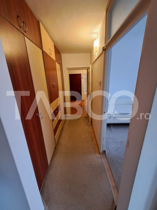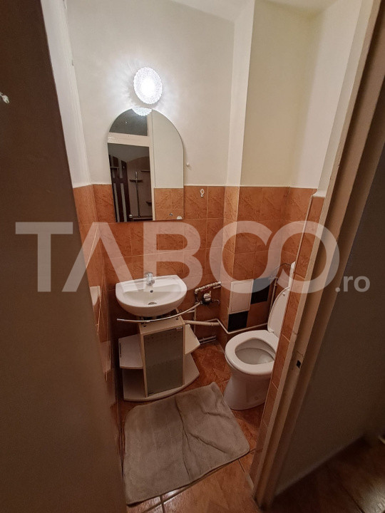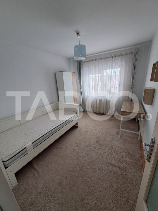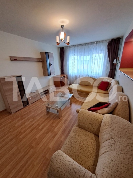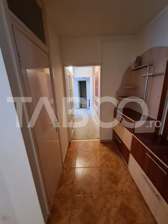 TABOO Imobiliare propune un apartament de inchiriat cu 3 camere, decomandat, situat in localitatea Sibiu, zona Central, aflat la etajul 4 intr -un imobil tip bloc cu regim de inaltime pe Parter + 4 Etaje; anul constructiei 1975, structura caramida. Suprafata utila de 65 mp + balcon de 5 mp