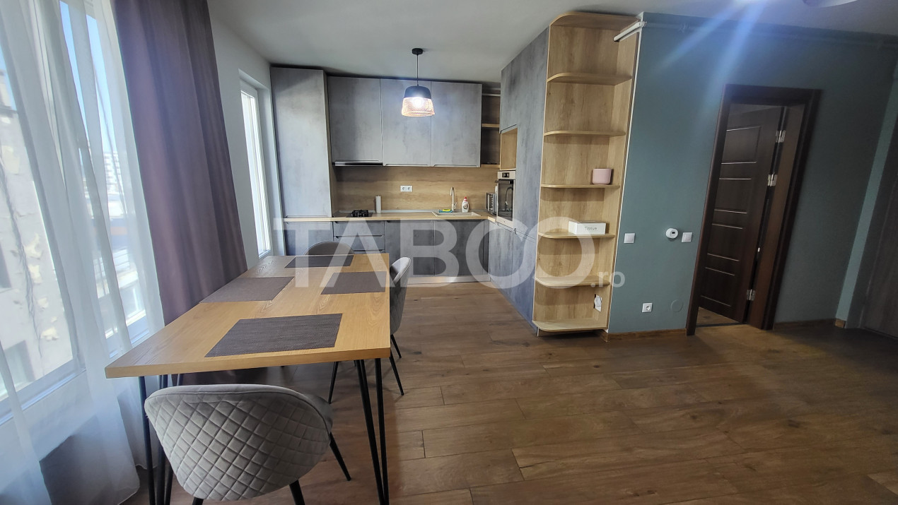 TABOO Imobiliare propune un apartament de inchiriat cu 2 camere, decomandat, situat in localitatea Sibiu, zona Doamna Stanca, aflat la etajul 5 intr -un imobil tip bloc cu regim de inaltime pe Parter + 6 Etaje; anul constructiei 2014, structura caramida. Suprafata utila de 60 mp + balcon de 10 mp.