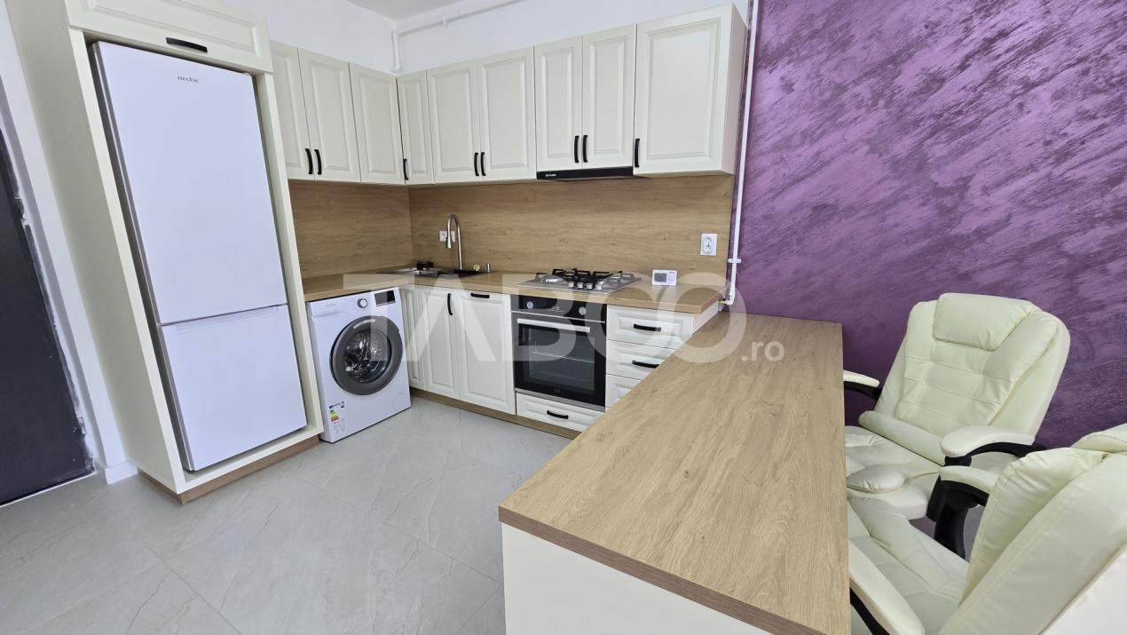 TABOO Imobiliare propune un apartament de inchiriat cu 2 camere, decomandat, situat in localitatea Sibiu, zona Doamna Stanca, aflat la etajul 3 intr -un imobil tip bloc cu regim de inaltime pe Parter + 3 Etaje; anul constructiei 2024, structura caramida. Suprafata utila de 39 mp + balcon de 6 mp.
