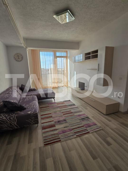 TABOO Imobiliare propune un apartament de inchiriat cu 2 camere, decomandat, situat in localitatea Sibiu, zona Doamna Stanca, aflat la etajul intermediar 9 intr-un imobil tip bloc cu regim de inaltime pe Parter +11 Etaje; anul constructiei 1980, structura beton. Suprafata utila de 55 mp + balcon de 5 mp