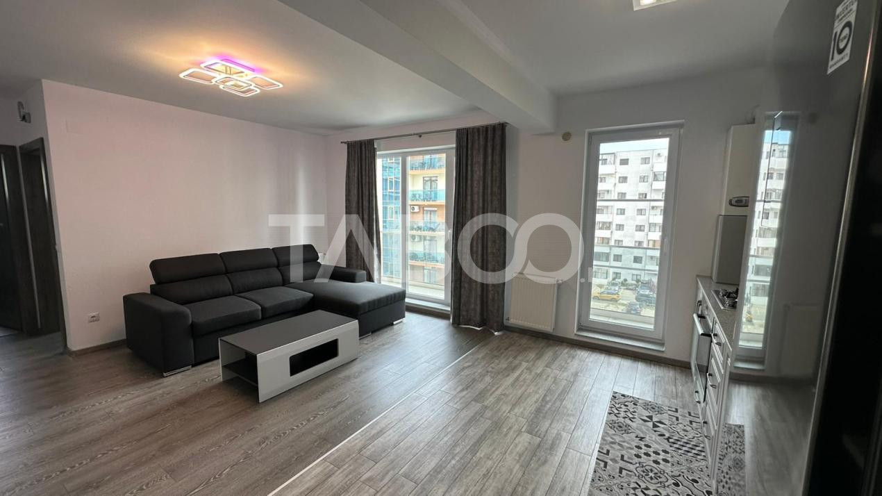 TABOO Imobiliare propune un apartament de inchiriat cu 2 camere, decomandat, situat in localitatea Sibiu, zona Doamna Stanca, aflat la etajul 4 intr -un imobil tip bloc cu regim de inaltime pe Parter + 7 Etaje; anul constructiei 2018, structura caramida. Suprafata utila de 49 mp + balcon de 9 mp