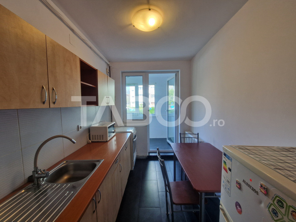 TABOO Imobiliare propune un apartament de inchiriat cu 2 camere, semidecomandat, situat in localitatea Sibiu, zona Mihai Viteazul, aflat la parterul unui imobil tip bloc cu regim de inaltime pe Parter + 10 Etaje; anul constructiei 1980, structura beton. Suprafata utila de 46 mp + balcon de 3 mp.