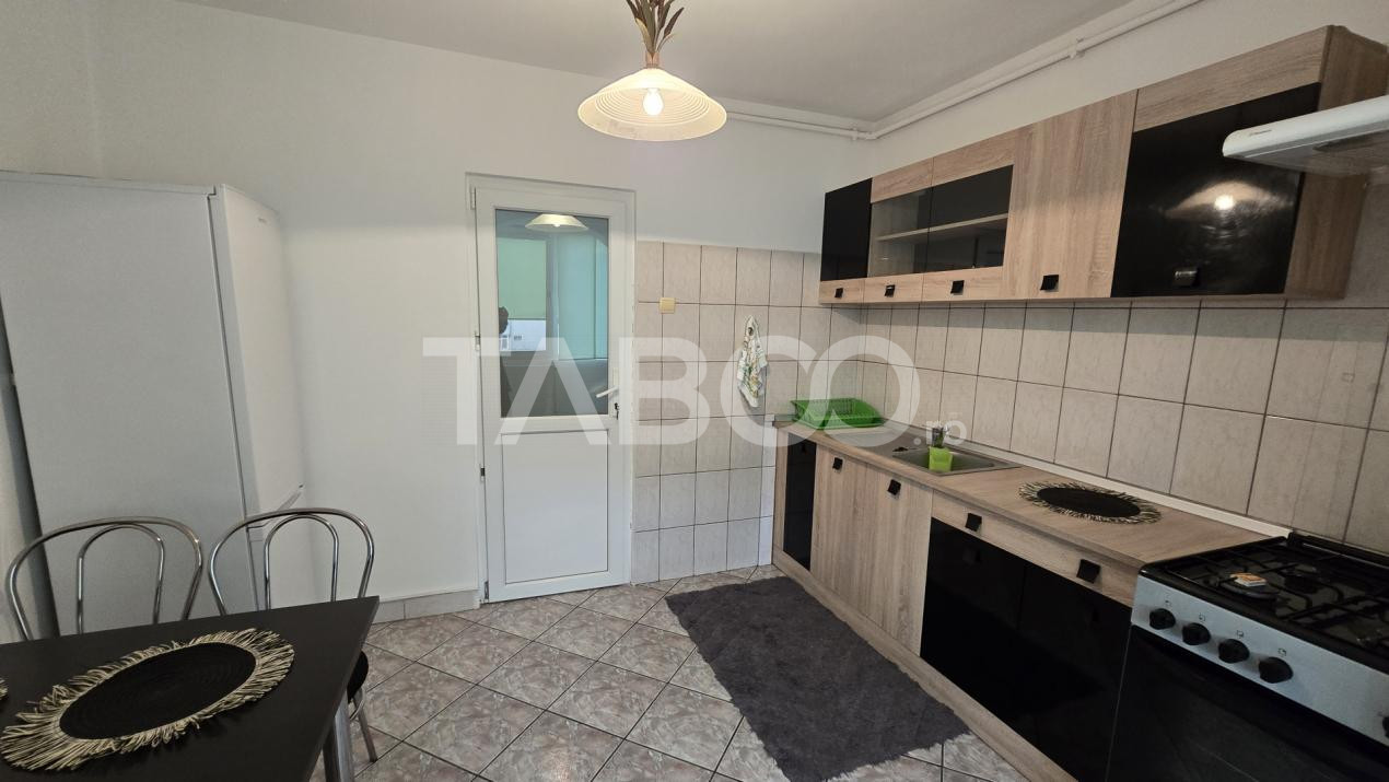 Apartamentul se inchiriaza mobilat si utilat cu: aragaz cu cuptor pe gaz, hota, masina de spalat rufe, frigider cu congelator.