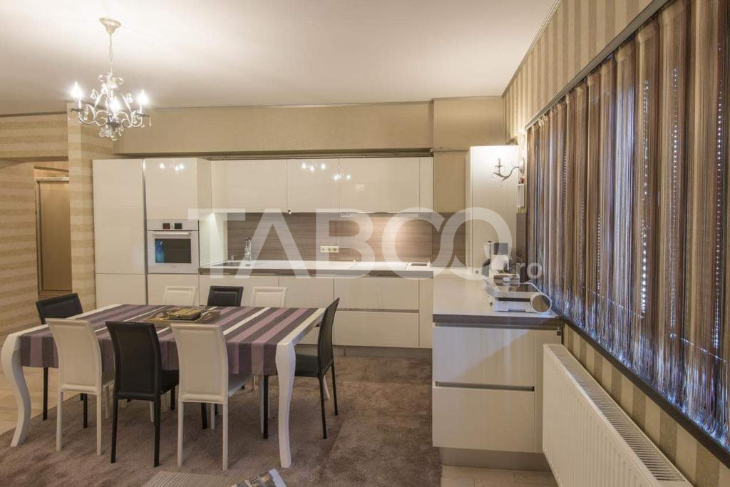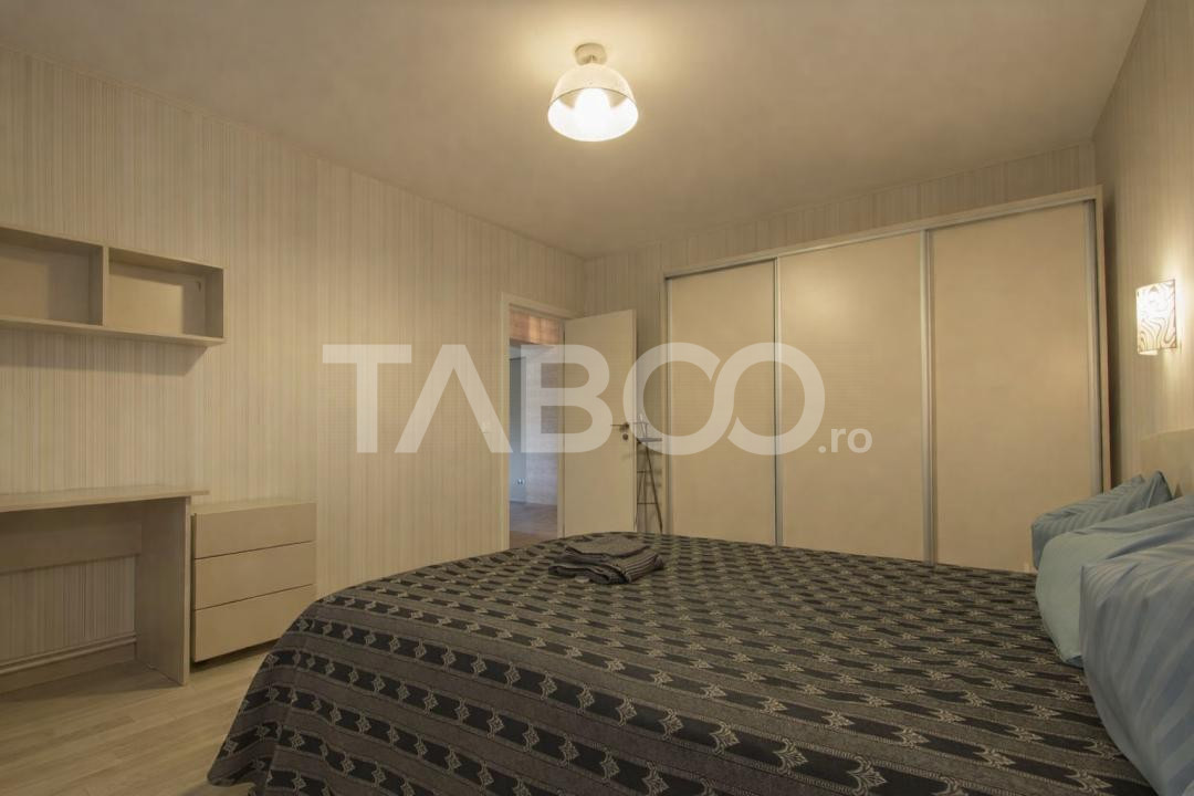 TABOO Imobiliare propune un apartament de inchiriat cu 3 camere, decomandat, situat in localitatea Sibiu, zona Mihai Viteazul, aflat la etajul 2 intr -un imobil tip bloc cu regim de inaltime pe Parter + 7 Etaje; anul constructiei 2017, structura caramida. Suprafata utila de 110 mp + balcon de 7 mp.