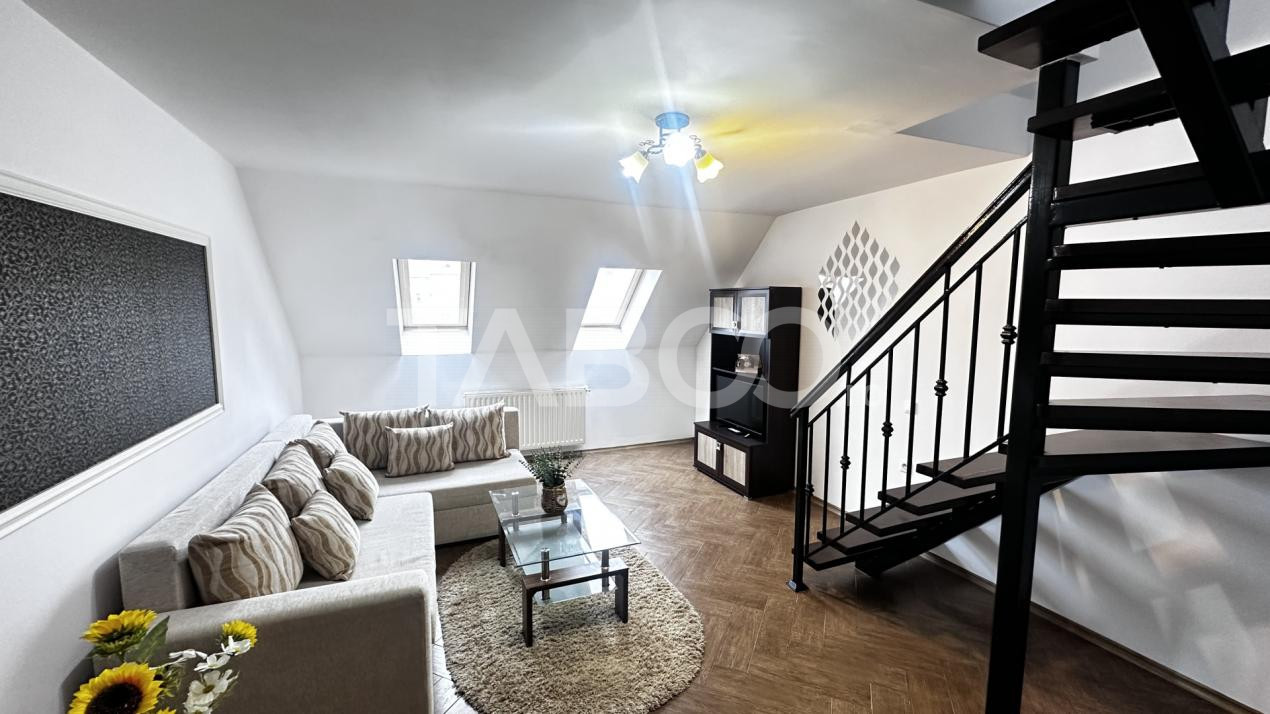 TABOO Imobiliare propune un apartament de inchiriat cu 3 camere, decomandat, situat in localitatea Sibiu, zona Mihai Viteazul, aflat la mansarda intr-un imobil tip bloc cu regim de inaltime pe Parter + 2 Etaje + Mansarda; anul constructiei 2010, structura caramida. Suprafata utila de 80 mp.