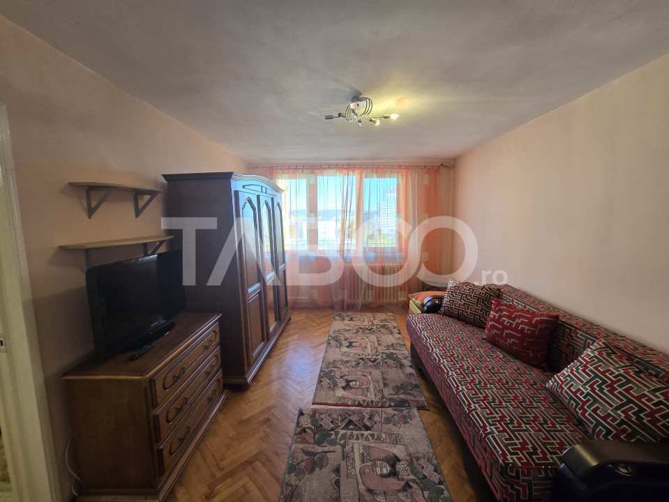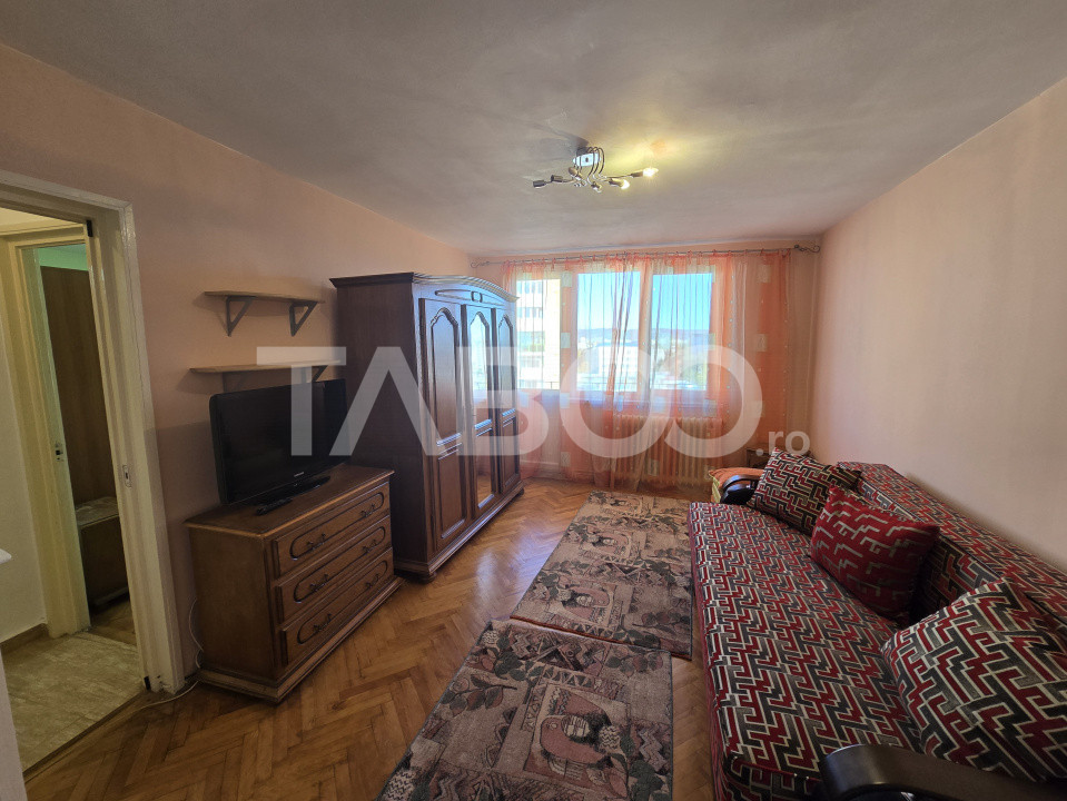 TABOO Imobiliare propune un apartament de inchiriat cu 2 camere, decomandat, situat in localitatea Sibiu, zona Rahovei, aflat la etajul 6 intr -un imobil tip bloc cu regim de inaltime pe Parter + 10 Etaje; anul constructiei 1980, structura caramida. Suprafata utila de 48 mp + balcon de 7 mp.