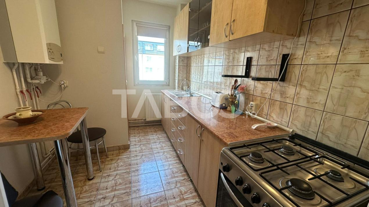 TABOO Imobiliare propune un apartament de inchiriat cu 2 camere, semidecomandat, situat in localitatea Sibiu, zona Rahovei, aflat la etajul 4 intr -un imobil tip bloc cu regim de inaltime pe Parter + 4 Etaje; anul constructiei 1980, structura beton. Suprafata utila de 40 mp + balcon de 3 mp
