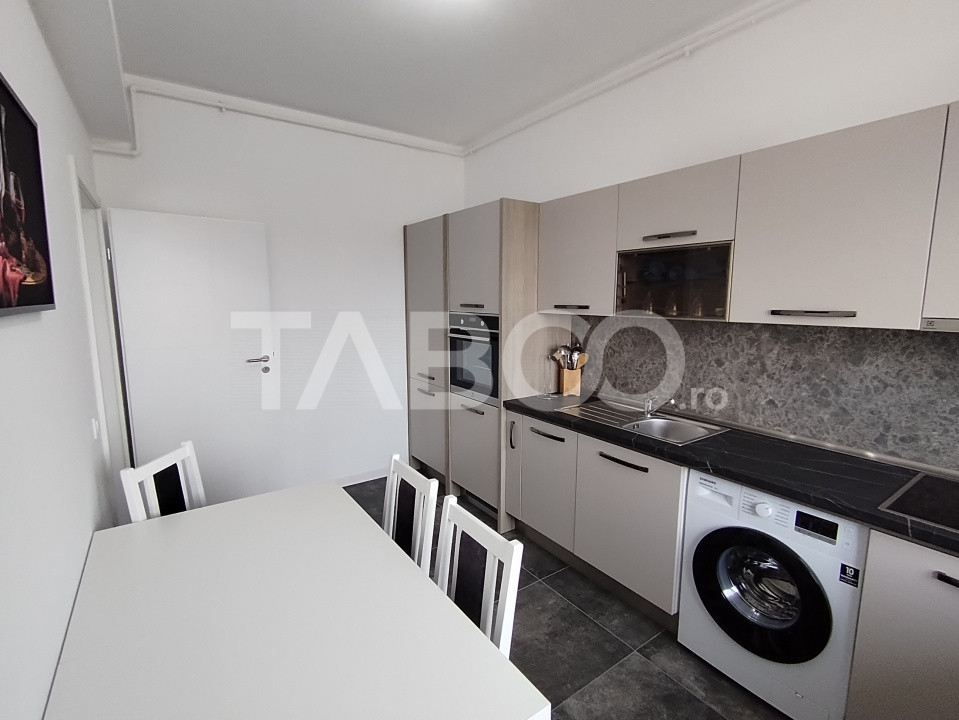 TABOO Imobiliare propune un apartament de inchiriat cu 2 camere, decomandat, situat in localitatea Sibiu, zona Selimbar, aflat la etajul 3 intr -un imobil tip bloc cu regim de inaltime pe Parter + 3 Etaje; anul constructiei 2025, structura caramida. Suprafata utila de 56 mp + balcon de 9 mp.