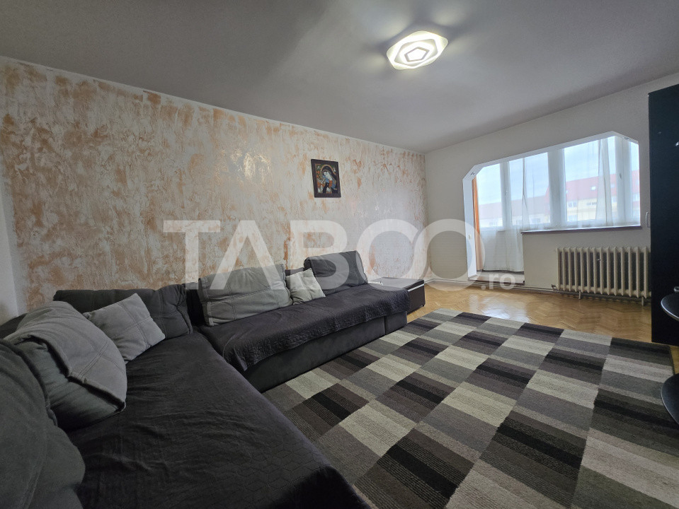 TABOO Imobiliare propune un apartament de inchiriat cu 3 camere, decomandat, situat in localitatea Sibiu, zona Strand, aflat la etajul 4 intr -un imobil tip bloc cu regim de inaltime pe Parter + 4 Etaje; anul constructiei 1985, structura caramida. Suprafata utila de 64 mp si balcon de 4 mp.