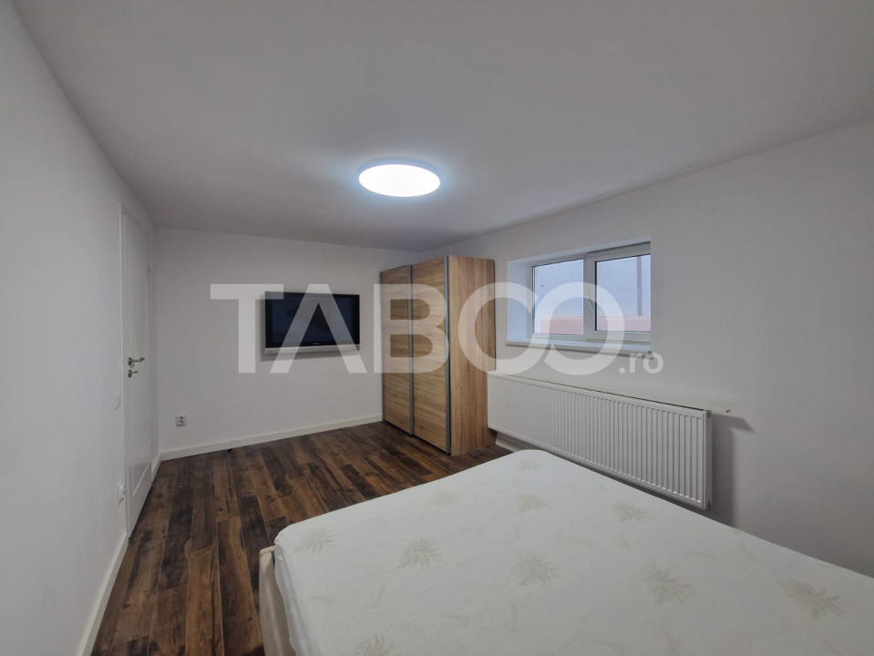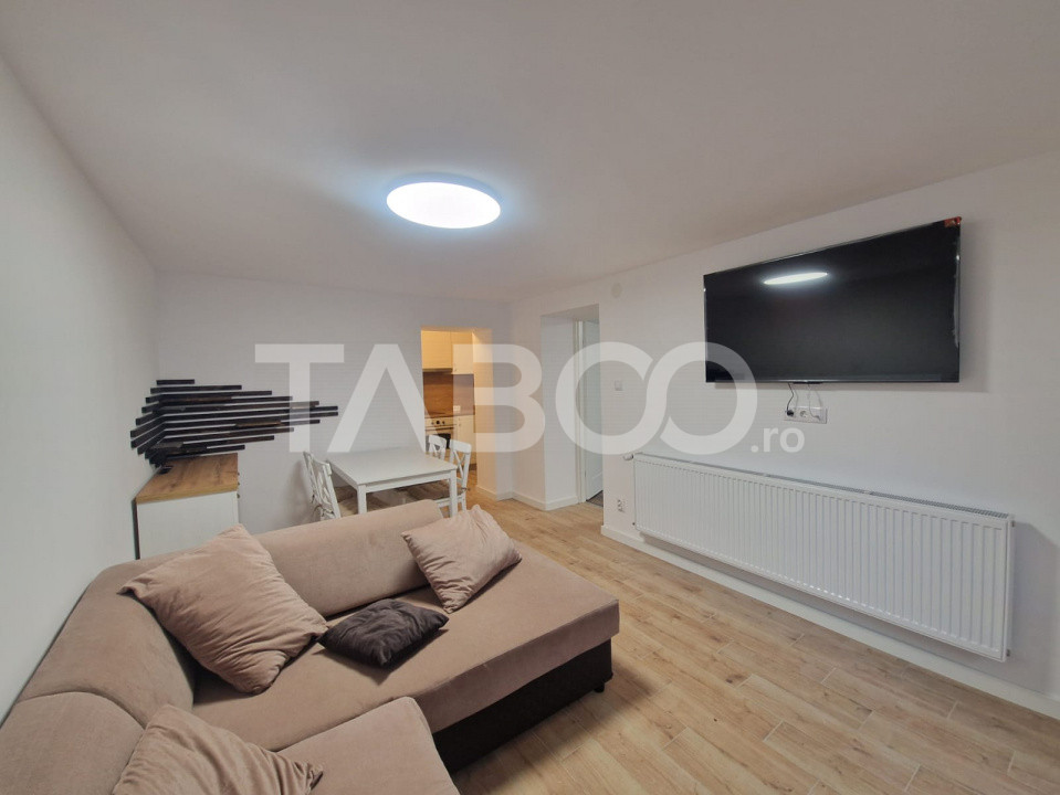 TABOO Imobiliare propune un apartament de inchiriat cu 2 camere, decomandat, situat in localitatea Sibiu, zona Vasile Aaron, aflat la Demisol intr -un imobil tip casa cu regim de inaltime pe Demisol+Parter+2 Etaje; anul constructiei 1993, anul renovarii 2025, structura caramida. Suprafata utila de 42 mp +terasa de 4 mp.