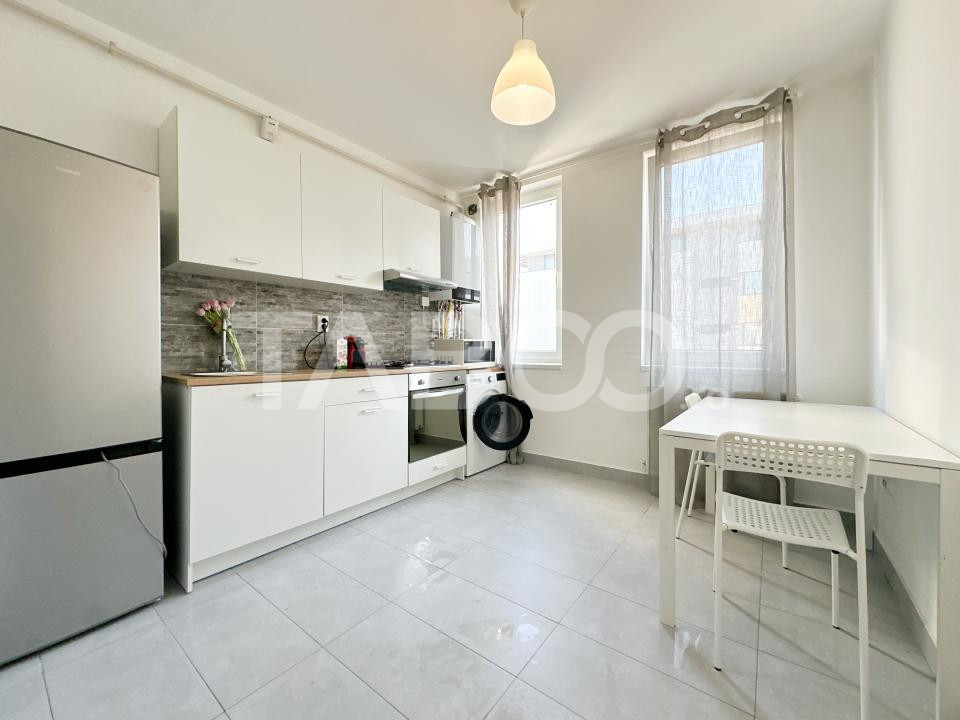 Apartamentul se vinde mobilat si utilat cu: plita electrica, cuptor, hota, masina de spalat rufe, frigider cu congelator.
