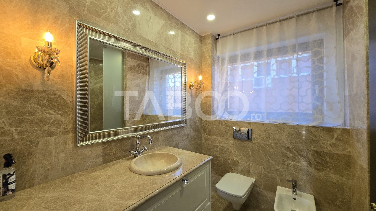 Apartament calduros si elegant, situat intr-o zona linistita intre case, la doar 2 minute de centru. Suprafata generoasa cu living open-space luminos, dormitor cu dressing, baie cu lumina naturala si spatii practice. Beneficii principale vedere panoramica spre munti, soare toata ziua, imobil exclusivist cu doar 12 apartamente, parcare privata si zona verde, linistita, inconjurata de tei si nuci maturi. Ideal pentru confort si relaxare. cu finisaje premium: marmura, parchet si usi din lemn masiv, blat de granit, electrocasnice Miele, mobilier Mobexpert. Apartamentul este complet nou, intabulat si gata de locuit. In apropriere avem Carrefour Express, Lidl si Kaufland, sala de fitness si Paradisul Acvatic in apropiere.