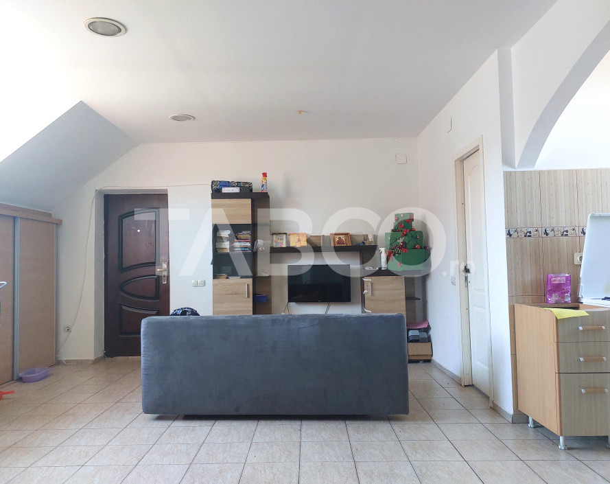 TABOO Imobiliare propune un apartament de vanzare cu 3 camere, decomandat, situat in localitatea Cisnadie, zona centrala, aflat la Mansarda intr -un imobil tip bloc mixt cu regim de inaltime pe Parter + 1 Etaje; anul constructiei 2016, structura caramida. Suprafata utila de 80 mp.