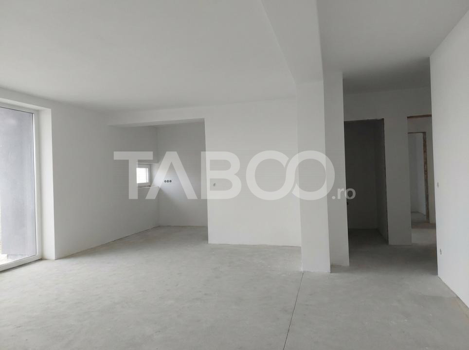 TABOO Imobiliare propune un apartament de vanzare cu 4 camere, decomandat, situat in localitatea Cisnadie, aflat la etajul 2 intr -un imobil tip bloc cu regim de inaltime pe Parter + 3 Etaje; anul constructiei 2025, structura caramida. Suprafata utila de 91 mp + terasa de 11 mp