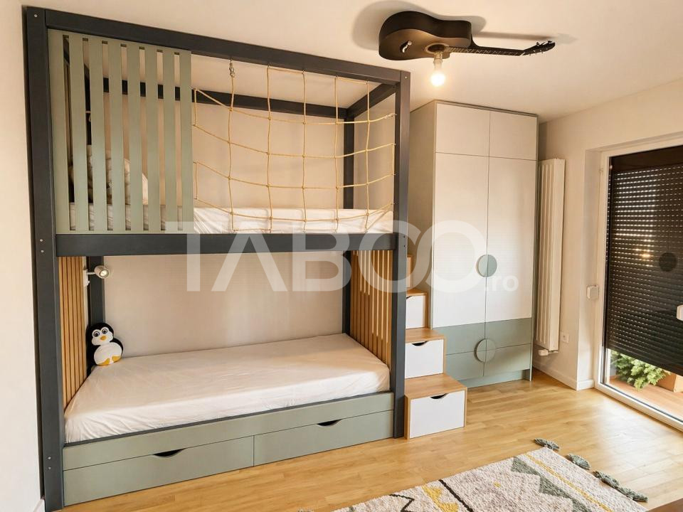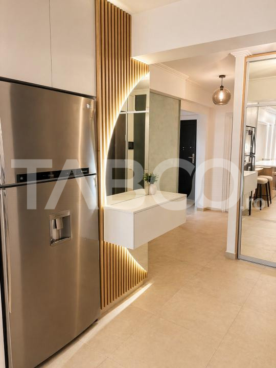Apartamentul se vinde mobilat si utilat cu: plita electrica, cuptor, hota, masina de spalat rufe, uscator rufe, masina de spalat vase, frigider cu congelator, espressor de cafea.
