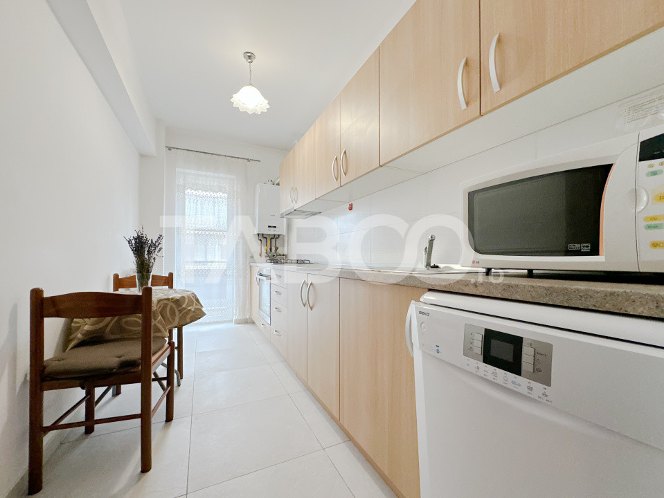 Apartamentul se vinde mobilat, cu mobila din lemn masiv (decorat artistic), si utilat cu: aragaz, cuptor, hota, masina de spalat rufe, masina de spalat vase, frigider cu congelator, cuptor cu microunde.