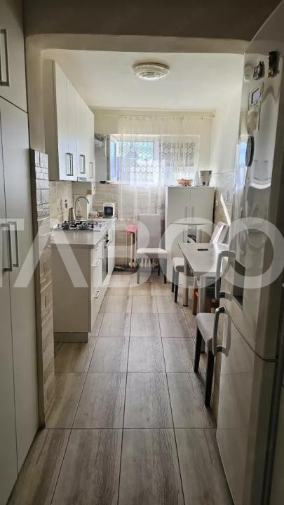 Apartamentul se vinde mobilat si utilat cu: aragaz, cuptor, frigider cu congelator,