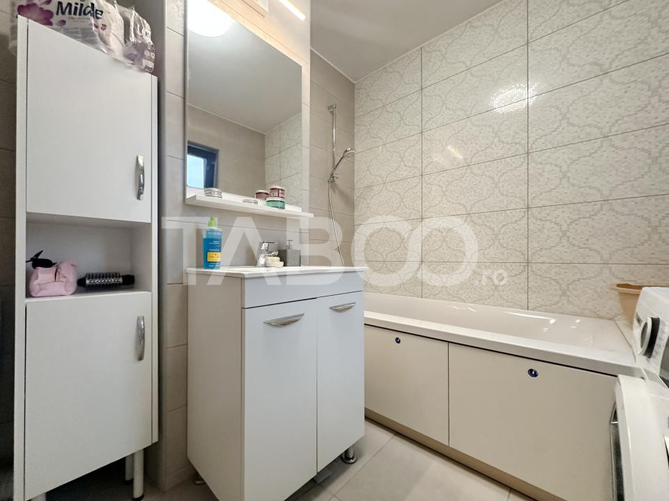 Apartamentul se vinde mobilat si utilat cu: plita electrica, cuptor, hota, masina de spalat rufe, masina de spalat vase, frigider cu congelator.