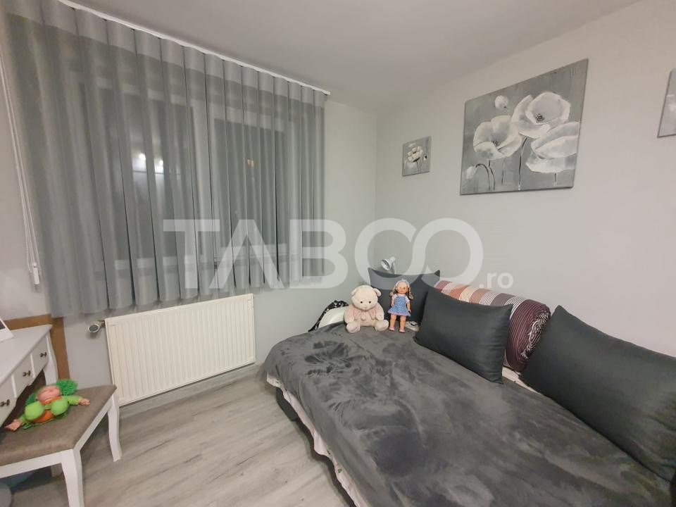 Apartamentul se vinde mobilat si utilat cu: plita pe gaz, cuptor, hota, masina de spalat rufe si frigider cu congelator.