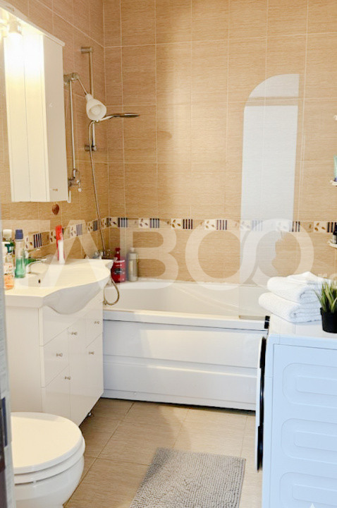 Apartamentul se vinde mobilat si utilat cu: plita electrica, cuptor, hota, masina de spalat rufe, frigider cu congelator.