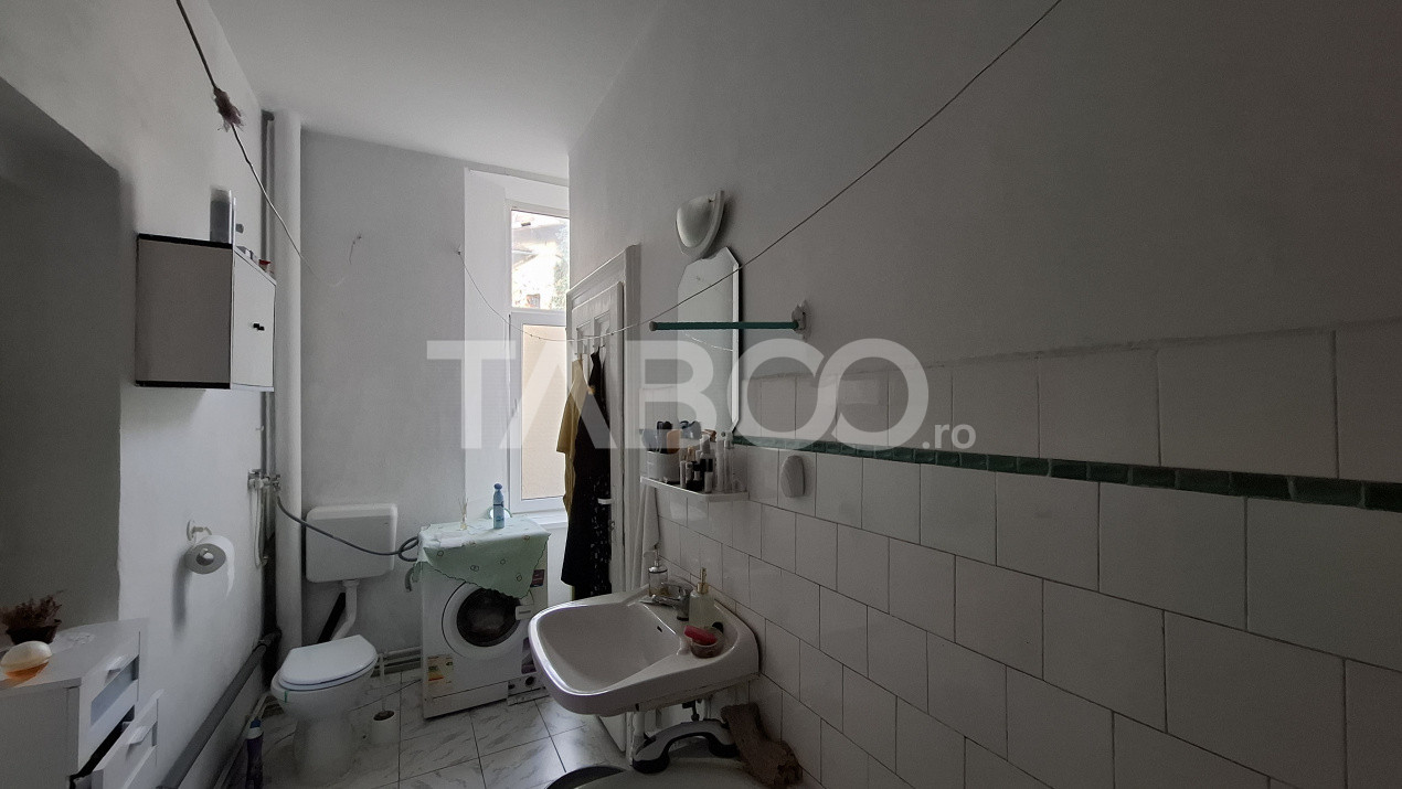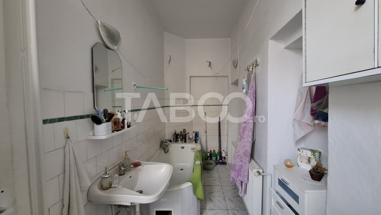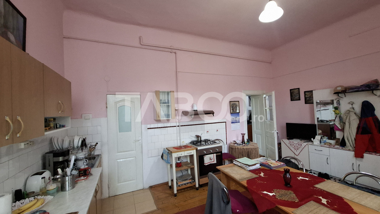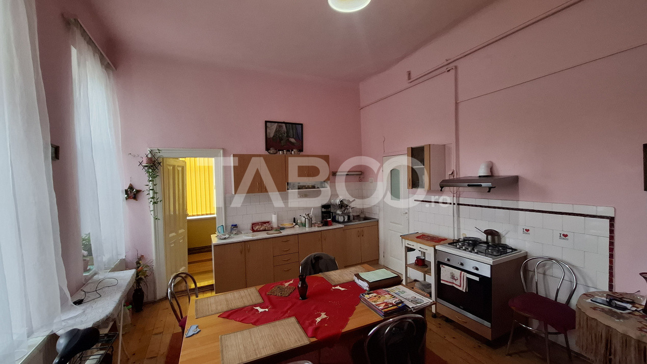 TABOO Imobiliare propune un apartament de vanzare cu 4 camere, circular, situat in localitatea Sibiu, zona Central, aflat la etajul P intr -un imobil tip vila cu regim de inaltime pe Parter + 2 Etaje; anul constructiei 1950, structura caramida. Suprafata utila de 113 mp + cota parte din terenul total aferent de 1400 mp