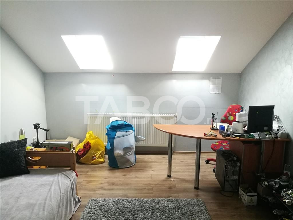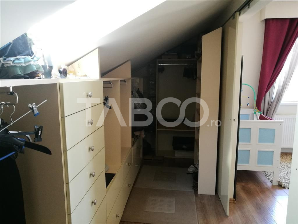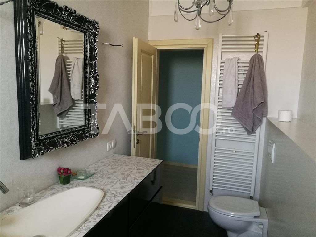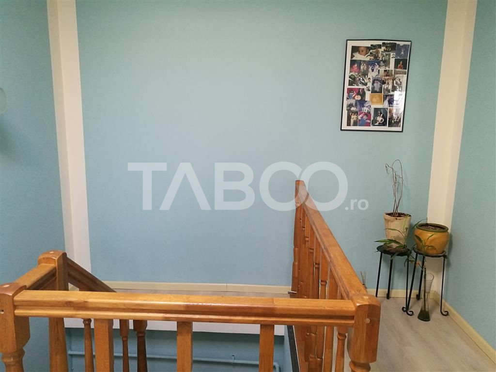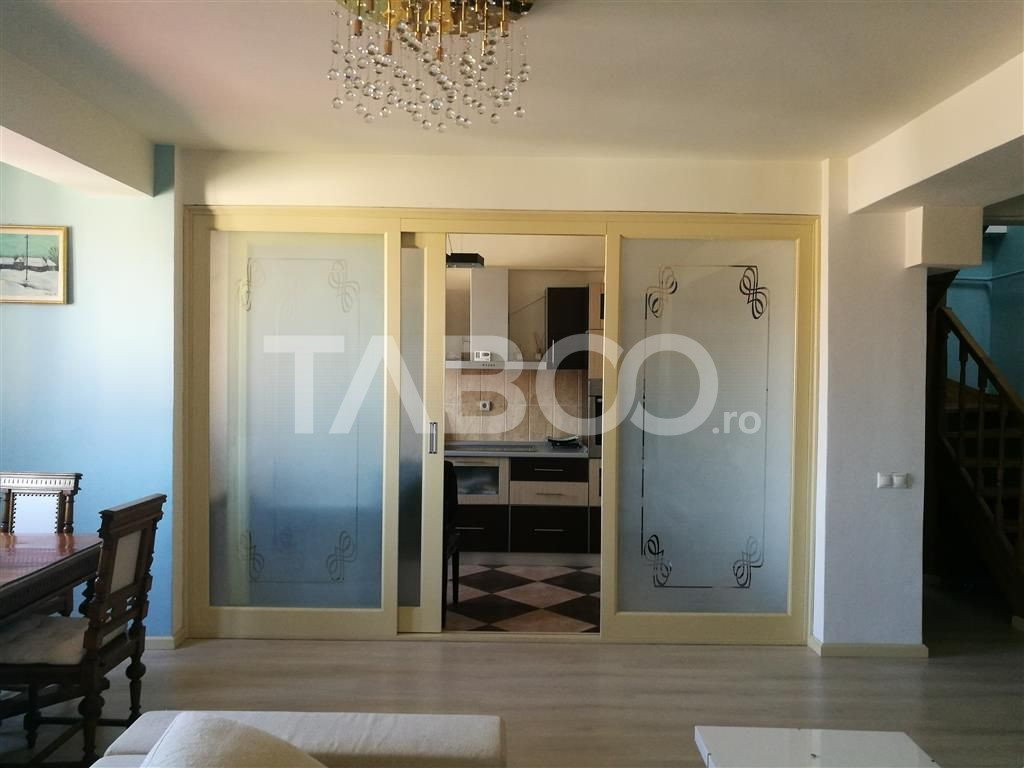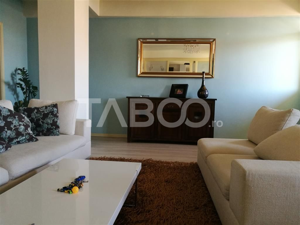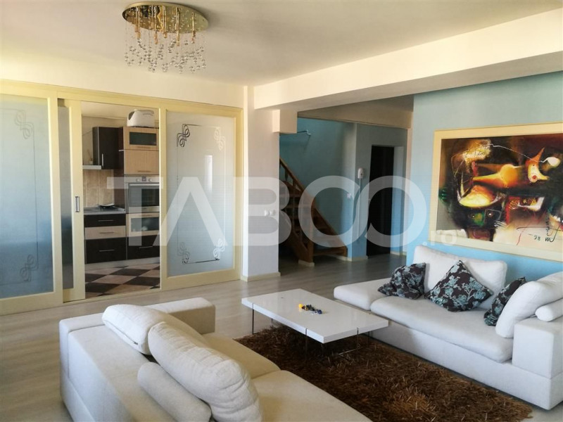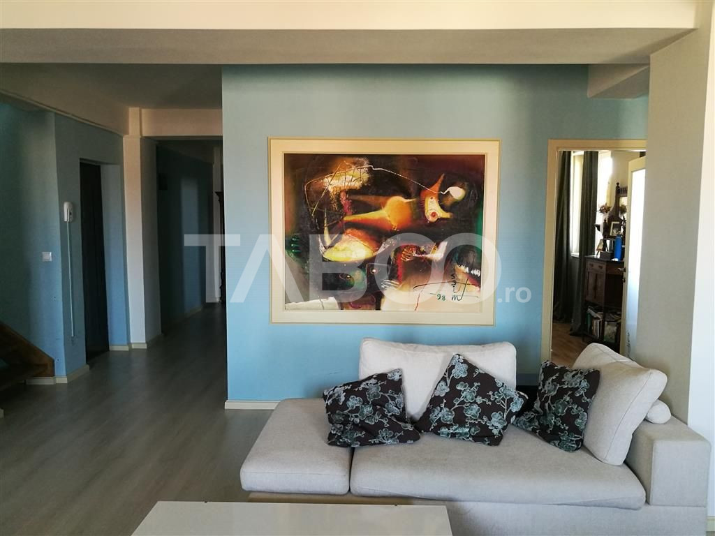 Apartament cu 4 camere decomandate de vanzare in zona Garii din Sibiu la doar 5 minute de Piata Mare, cu o suprafata totala de 164 mp si o suprafata utila de 140 mp, strucurat pe 2 nivele, situat la etajul 4 al unui imobil construit in anul 2007 cu materiale de cea mai buna calitate ce beneficiaza de interfon la intrarea in scara si izolatie termica la exterior.