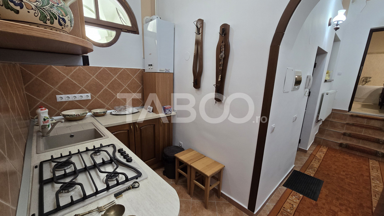 TABOO Imobiliare propune un apartament de vanzare cu 2 camere, decomandat, situat in localitatea Sibiu, zona Centrul Istoric, aflat la Parter intr -un imobil tip casa/vila cu regim de inaltime pe Parter + 2 Etaje; anul constructiei 1900, structura caramida. Suprafata utila de 61 mp.