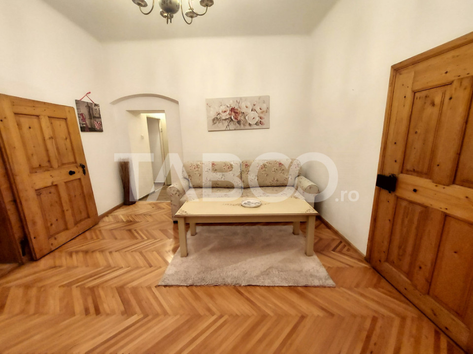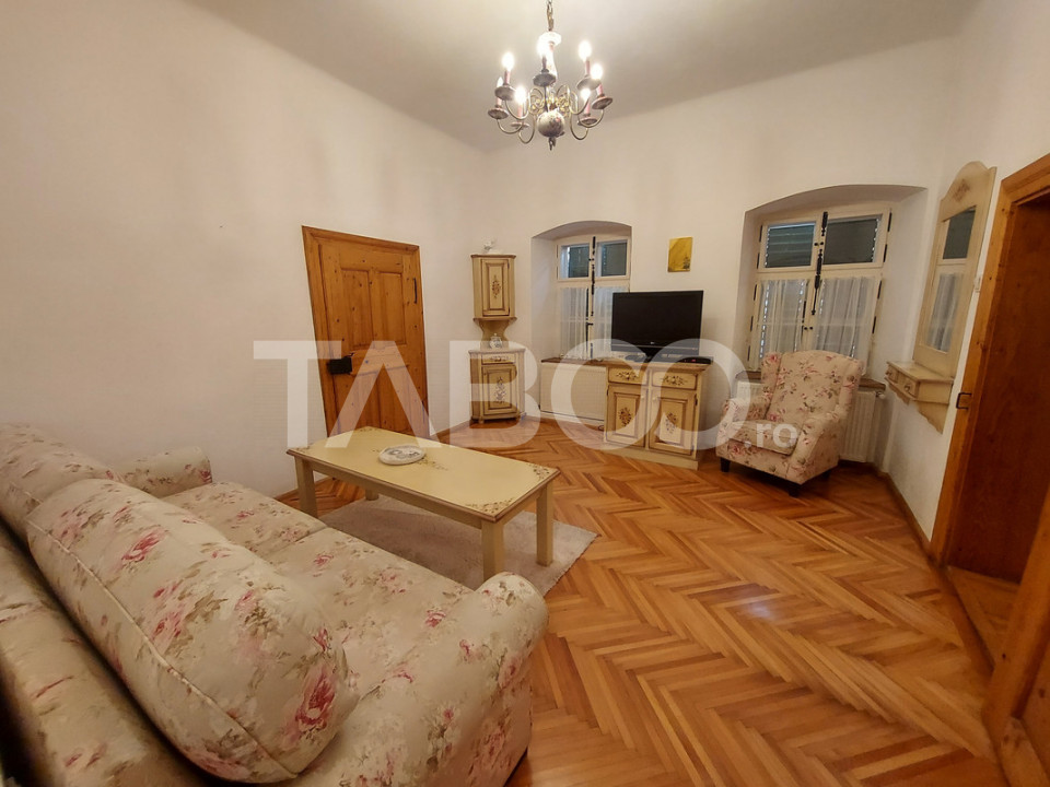 TABOO Imobiliare propune un apartament de vanzare cu 2 camere, nedecomandat, situat in localitatea Sibiu, zona Centrul Istoric, aflat la parter intr -un imobil tip casa/vila cu regim de inaltime pe Parter + 1 Etaj; anul constructiei 1890, structura caramida. Suprafata utila de 56 mp.