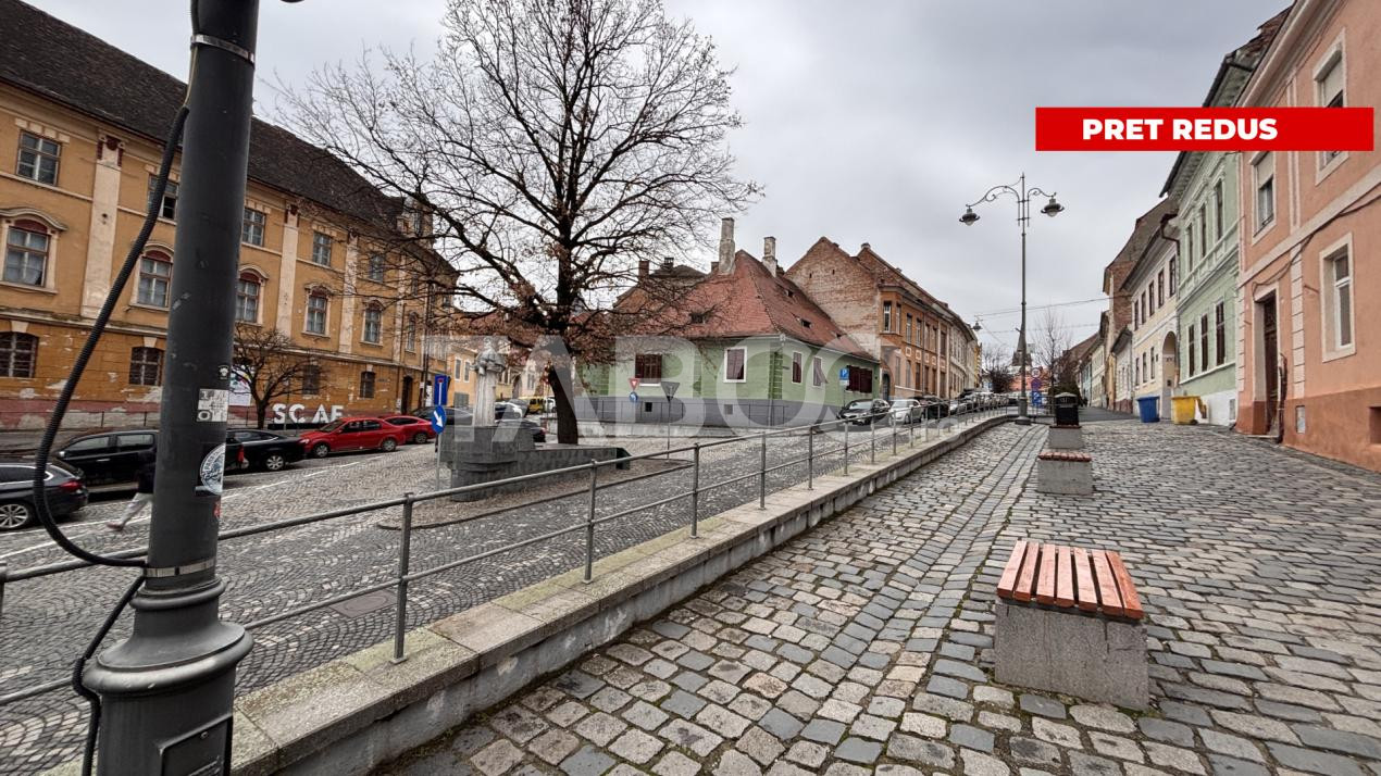 TABOO Imobiliare propune un apartament de vanzare cu 2 camere, semidecomandat, situat in localitatea Sibiu, zona Centrul Istoric, aflat la etajul 1 intr -un imobil tip casa cu regim de inaltime Parter + 1 Etaj; anul constructiei 1900, structura caramida. Suprafata utila de 93 mp + balcon de 9 mp si pivnita de 10 mp