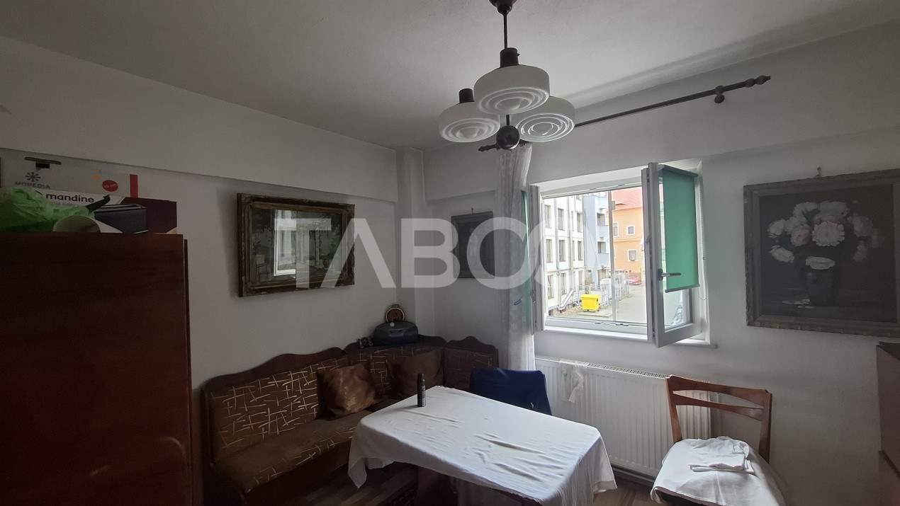 TABOO Imobiliare propune un apartament de vanzare cu 4 camere, decomandat, situat in localitatea Sibiu, zona Centrul Istoric, aflat la etajul 1 intr -un imobil tip bloc cu regim de inaltime pe Parter + 2 Etaje; anul constructiei 1992, structura caramida. Suprafata utila de 85 mp + balcon de 4 mp, pivnita de 10 mp.