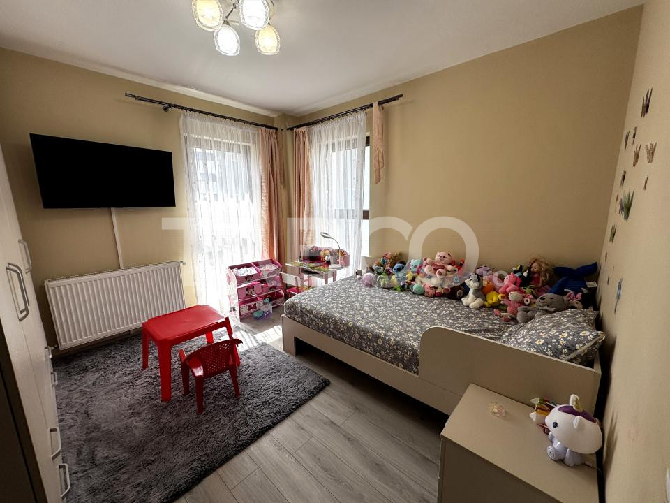 TABOO Imobiliare propune un apartament de vanzare cu 3 camere, decomandat, situat in localitatea Sibiu, zona Doamna Stanca, aflat la etajul 4 intr -un imobil tip bloc cu regim de inaltime pe Parter + 6 Etaje; anul constructiei 2018, structura beton. Suprafata utila de 66 mp + doua balcoane de 4,35 mp respectiv de 4,37 mp.