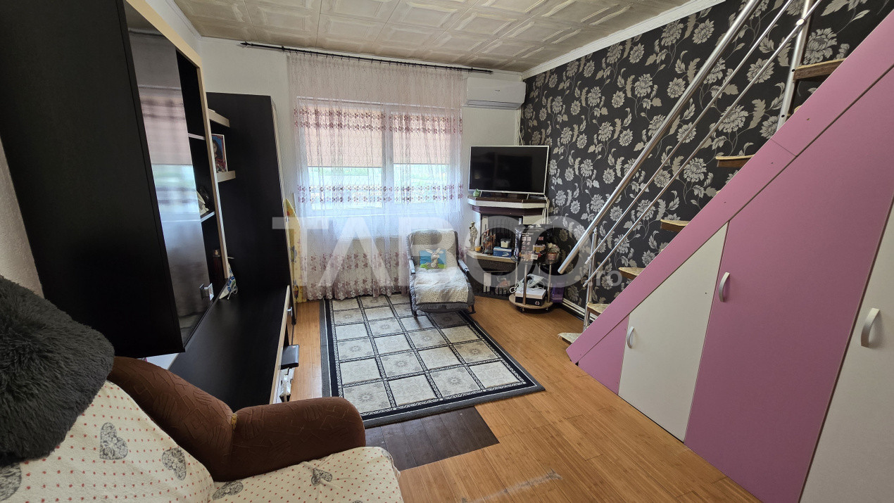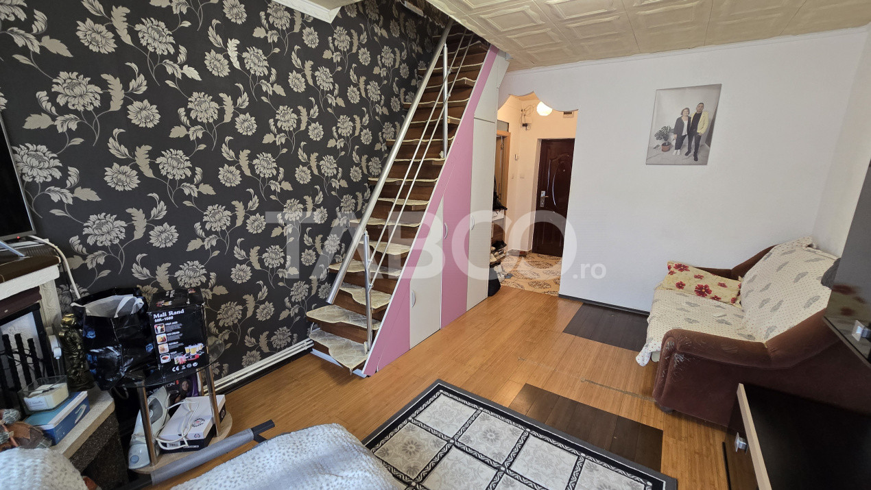 TABOO Imobiliare propune un apartament de vanzare cu 3 camere, semidecomandat, situat in localitatea Sibiu, zona Lazaret, aflat la Mansarda intr -un imobil tip bloc cu regim de inaltime pe Parter + 4 Etaje + Mansarda; anul constructiei 1980, structura beton. Suprafata utila de 61 mp.