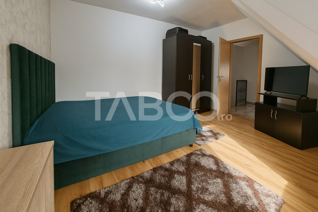 Apartament 3 camere de vanzare, decomandat, 81 mp, zona Mihai Viteazul, Sibiu. Mansarda pe 2 nivele de vanzare, amenajata modern, mobilata si uitilata cu bun gust. Este dispusa pe 2 niveluri de inaltime, cu scara interioara, ambele niveluri fiind intabulate ceea ce face posibila achizitionarea cu credit ipotecar.