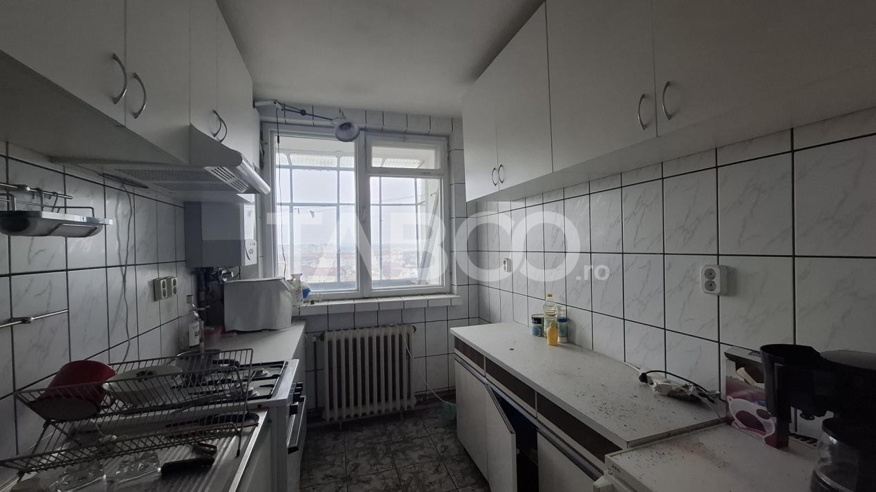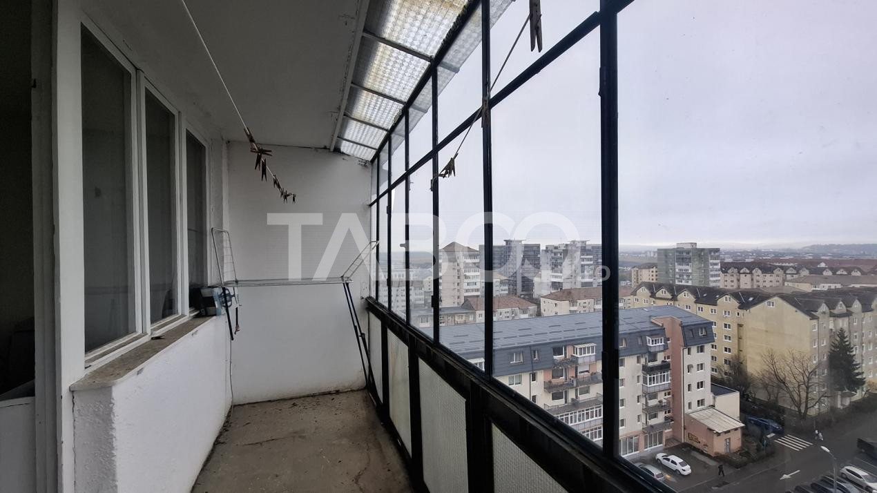 TABOO Imobiliare propune un apartament de vanzare cu 3 camere, decomandat, situat in localitatea Sibiu, zona Mihai Viteazul, strada Ostirii, aflat la etajul 10 intr -un imobil tip bloc cu regim de inaltime pe Parter + 10 Etaje; anul constructiei 1980, structura caramida. Suprafata utila de 71 mp + balcon de 6 mp.
