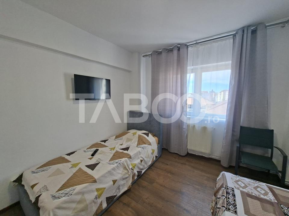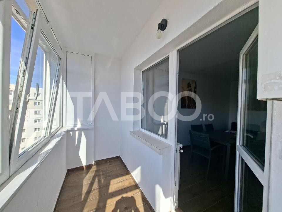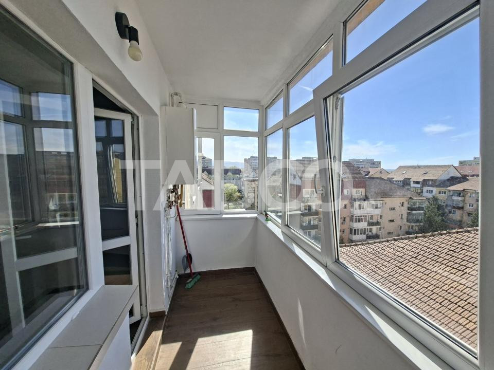 TABOO Imobiliare propune un apartament de vanzare cu 3 camere, decomandat, situat in localitatea Sibiu, zona Mihai Viteazul, aflat la etajul 7 intr -un imobil tip bloc cu regim de inaltime pe Parter + 8 Etaje; anul constructiei 1970, structura beton. Suprafata utila de 66 mp + balcon inchis de 5 mp.