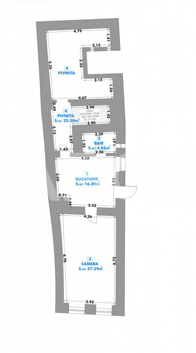• Pivnita la nivelul soului cu intrare din casa unde se poate amenaja un Living.