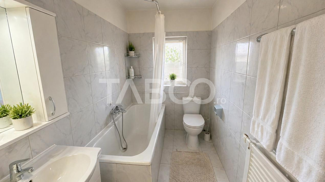 TABOO Imobiliare propune un apartament de vanzare cu 3 camere, decomandat, situat in localitatea Sibiu, zona Selimbar, aflat la parter intr -un imobil tip casa/vila cu regim de inaltime demisol +Parter + mansarda; anul constructiei 1995, structura caramida. Suprafata utila de 56 mp