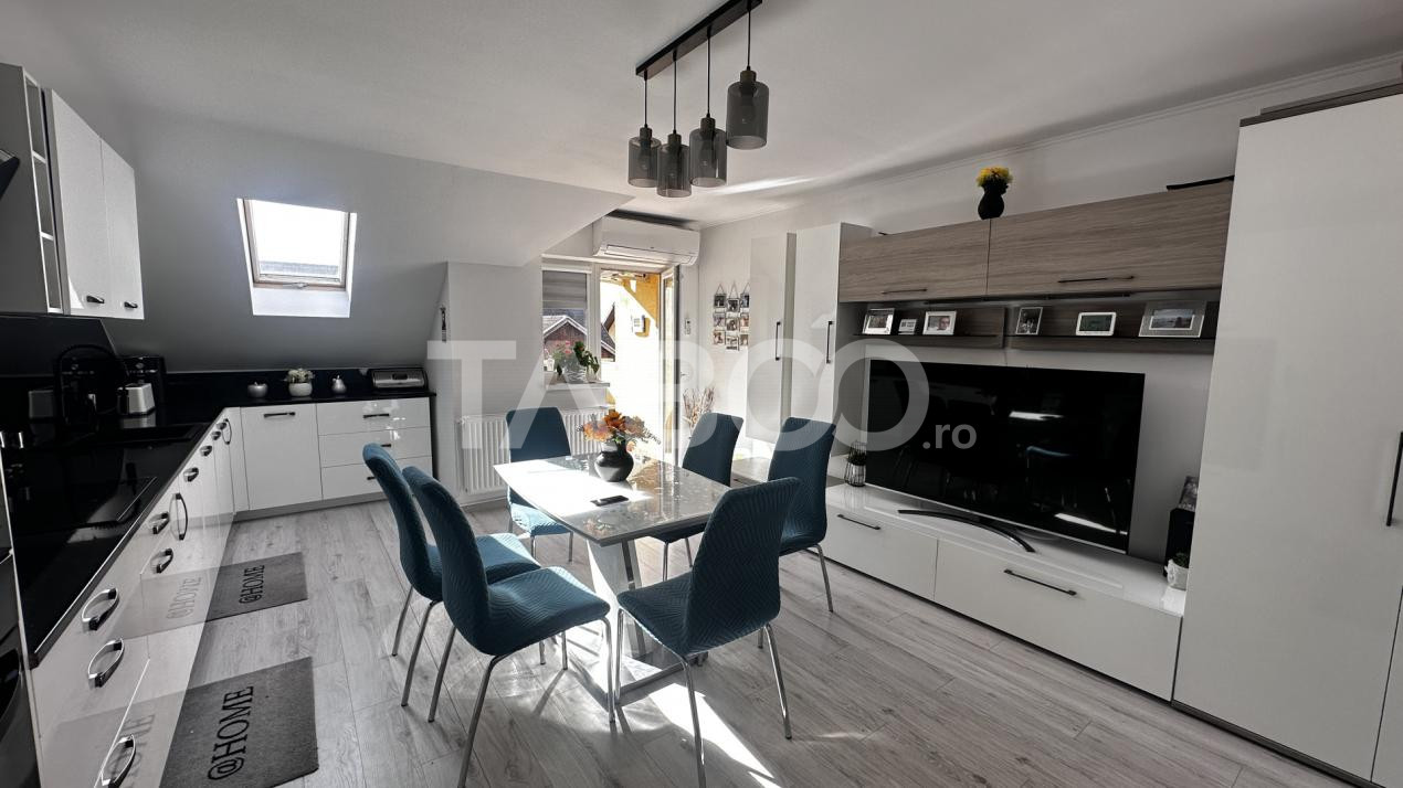 TABOO Imobiliare propune un apartament de vanzare cu 3 camere, decomandat, situat in localitatea Sibiu, zona Selimbar, aflat la etajul M intr-un imobil tip bloc cu regim de inaltime pe Parter + 2 Etaje + Mansarda; anul constructiei 2008, structura caramida. Suprafata utila de 62 mp + balcon de 10 mp.