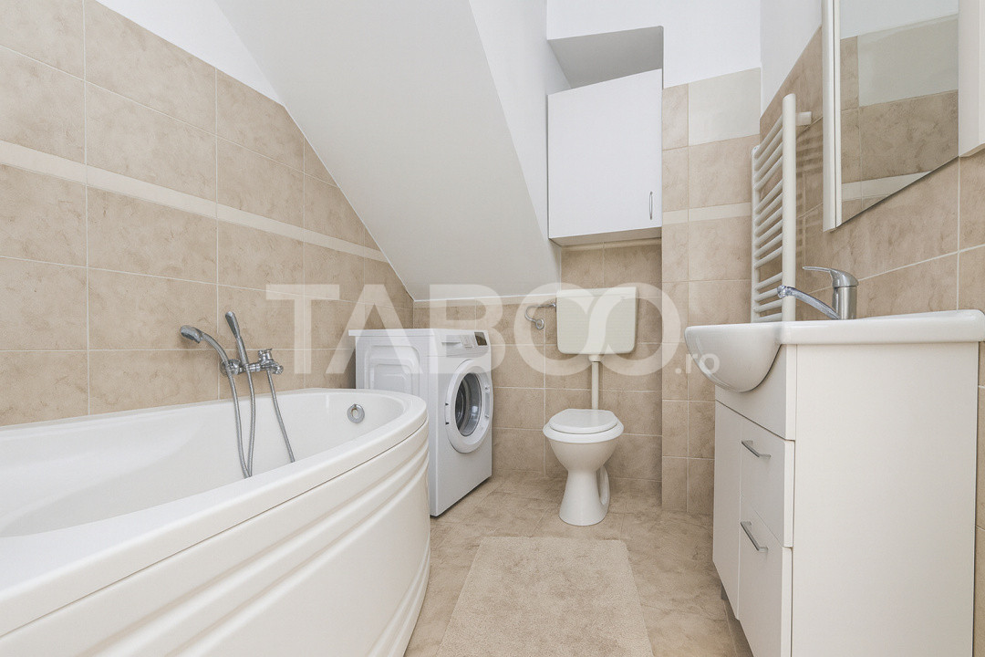 TABOO Imobiliare propune un apartament de vanzare cu 3 camere, decomandat, situat in localitatea Sibiu, zona Terezian, aflat la etajul Mansarda intr -un imobil tip bloc cu regim de inaltime pe Parter + 4 Etaje+Mansarda; anul constructiei 2008, structura caramida. Suprafata utila de 70 mp + balcon de 3 mp.