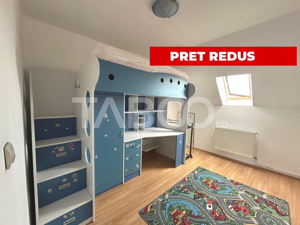 TABOO Imobiliare propune un apartament de vanzare cu 3 camere, semidecomandat, situat in localitatea Sibiu, zona Terezian, aflat la mansarda intr -un imobil tip bloc cu regim de inaltime pe Parter + 4 Etaje+ mansarda ,anul constructiei 2006, structura bca. Suprafata utila de 74 mp.