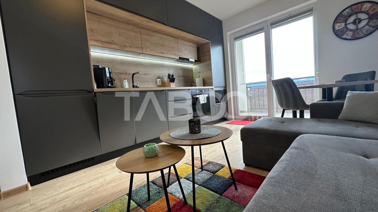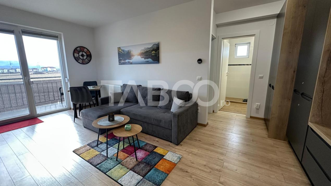TABOO Imobiliare propune un apartament de vanzare cu 2 camere, decomandat, situat in localitatea Sibiu, zona Turnisor, aflat la etajul 3 intr -un imobil tip bloc cu regim de inaltime pe Parter + 4 Etaje + etaj retras; anul constructiei 2019, structura caramida. Suprafata utila de 46 mp + balcon de 9 mp,