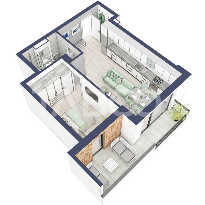 TABOO Imobiliare propune un apartament de vanzare cu 2 camere, semidecomandat, situat in localitatea Sibiu, zona Turnisor, aflat la etajul 3 intr-un imobil tip bloc cu regim de inaltime pe Parter + 3 Etaje + Etaj Retras; anul constructiei 2025, structura caramida. Suprafata utila de 45 mp + balcon de 10 mp.