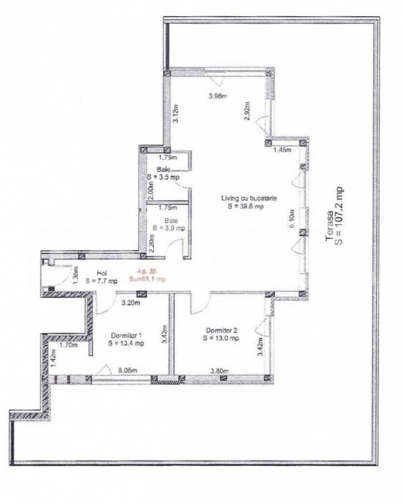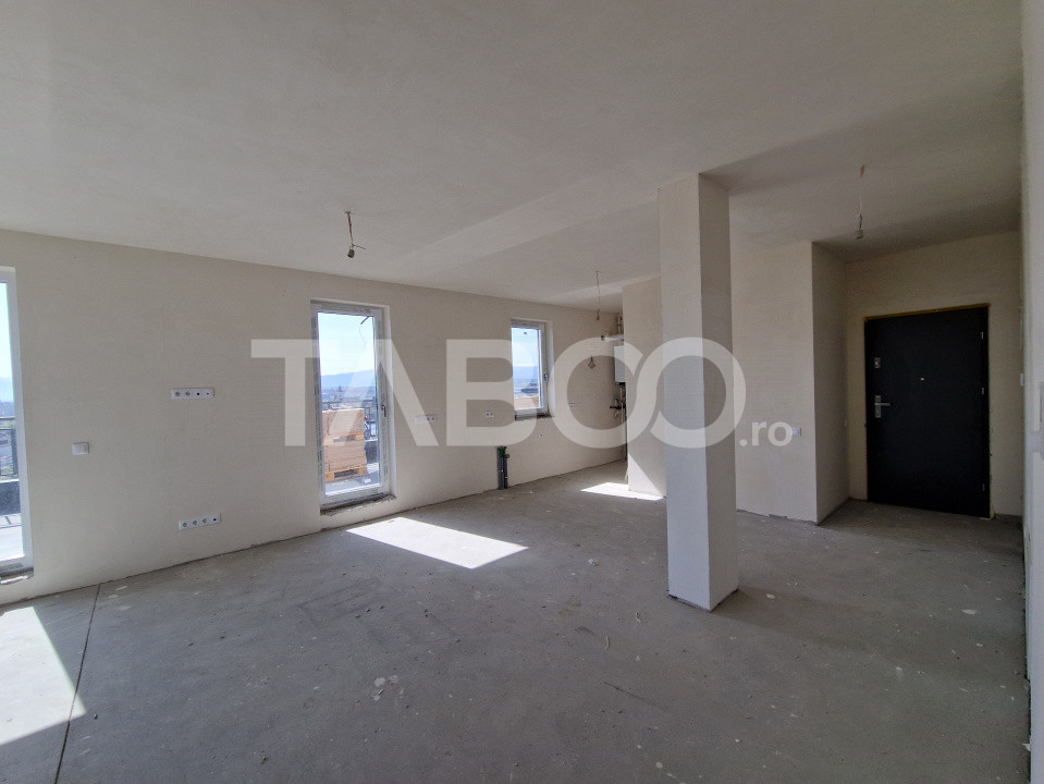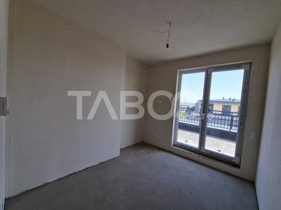 TABOO Imobiliare propune un apartament de vanzare cu 3 camere, decomandat, situat in localitatea Sibiu, zona Turnisor, aflat la etajul retras intr-un imobil tip bloc cu regim de inaltime pe Parter + 3 Etaje + Etaj retras; anul constructiei 2024, structura caramida. Suprafata utila de 81 mp + terasa de 107 mp.