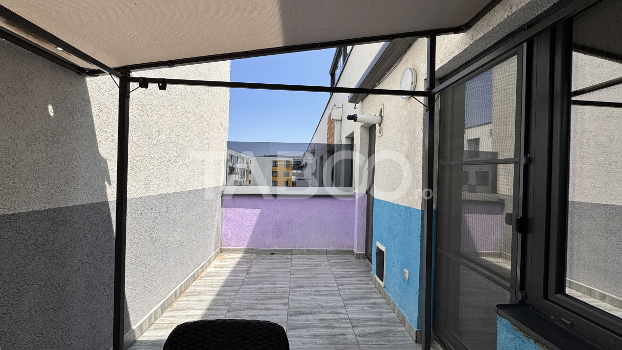 TABOO Imobiliare propune un apartament de vanzare cu 3 camere, decomandat, situat in localitatea Sibiu, zona Turnisor, aflat la etajul intermediar 1 intr-un imobil tip bloc cu regim de inaltime pe Parter + 1 Etaje + 1 Etaj retras; anul constructiei 2020, structura beton. Suprafata utila de 80 mp + terasa de 14 mp.