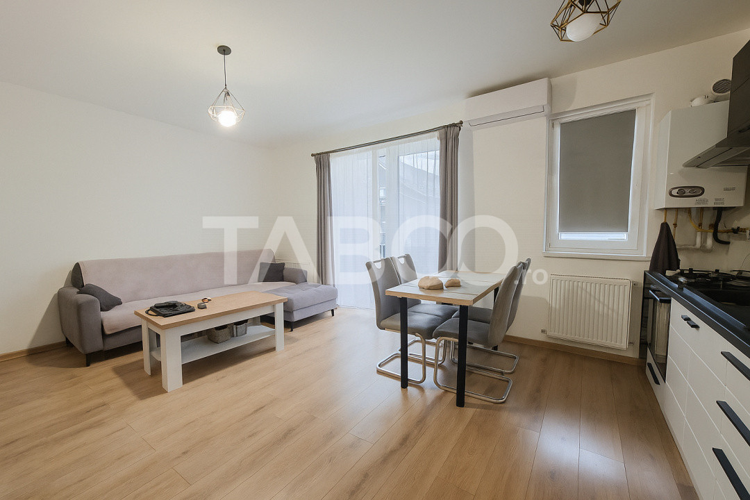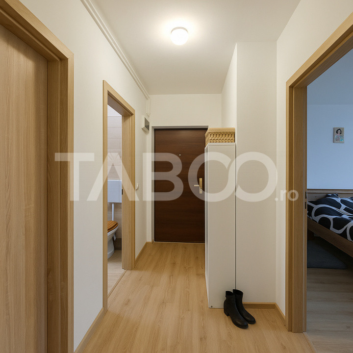 TABOO Imobiliare propune un apartament de vanzare cu 3 camere, decomandat, situat in localitatea Sibiu, zona Turnisor, aflat la Parter intr -un imobil tip bloc cu regim de inaltime pe Parter + 4 Etaje; anul constructiei 2020, structura caramida. Suprafata utila de 53 mp + balcon deschis de 10 mp.